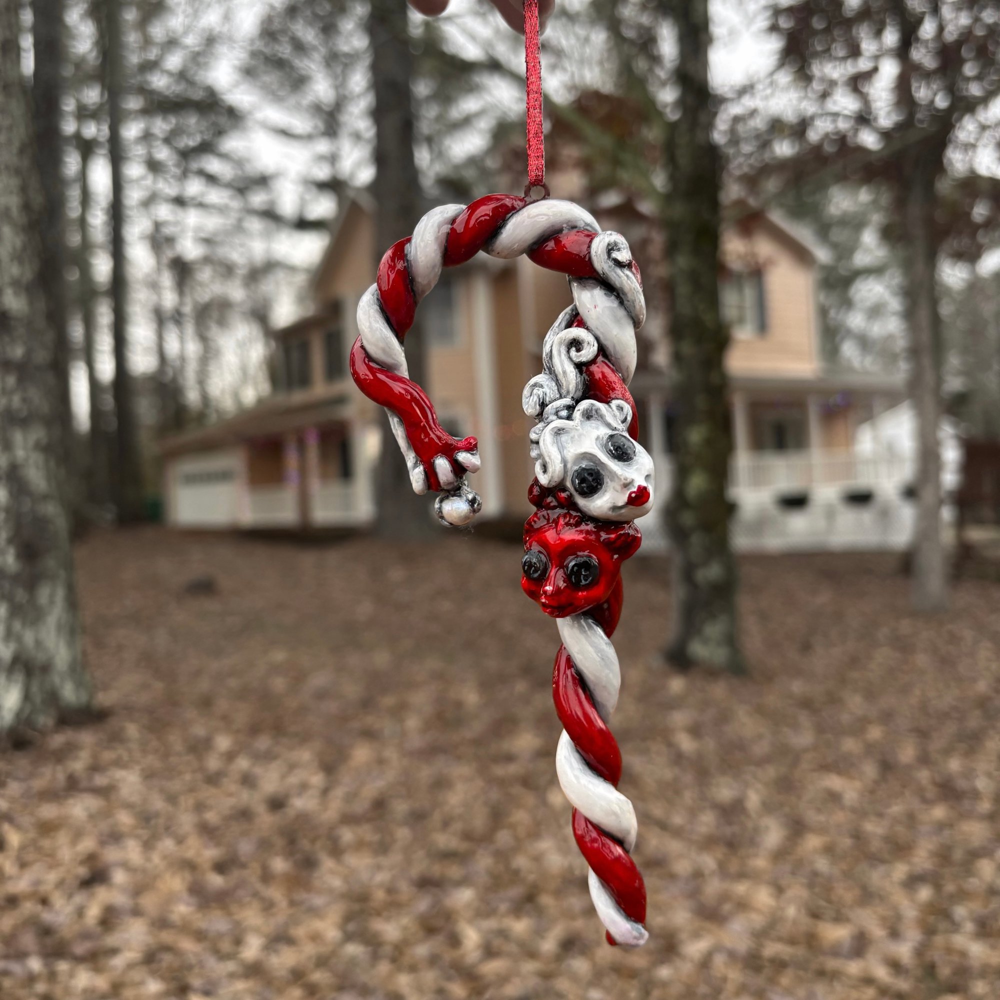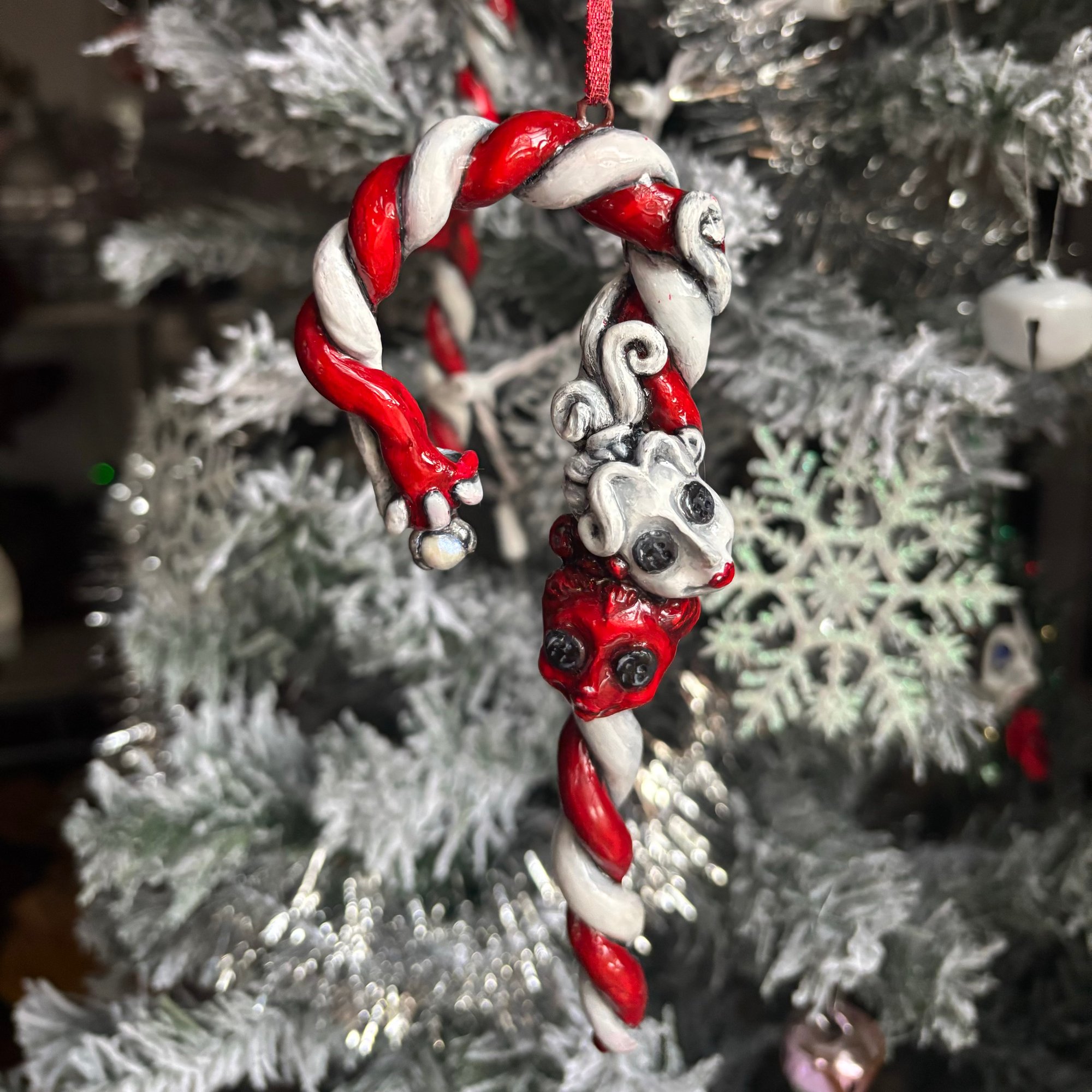 This listing is for one red/white ornament inspired by Coraline.