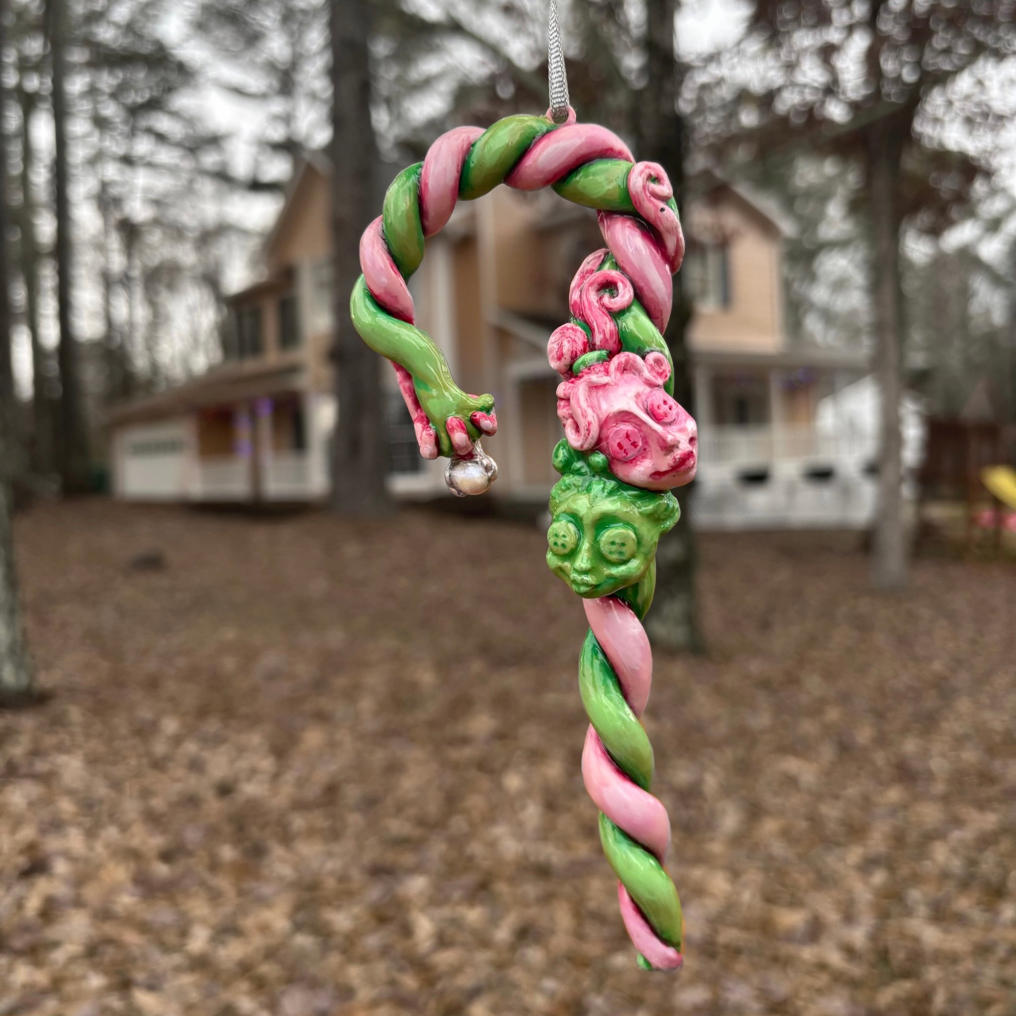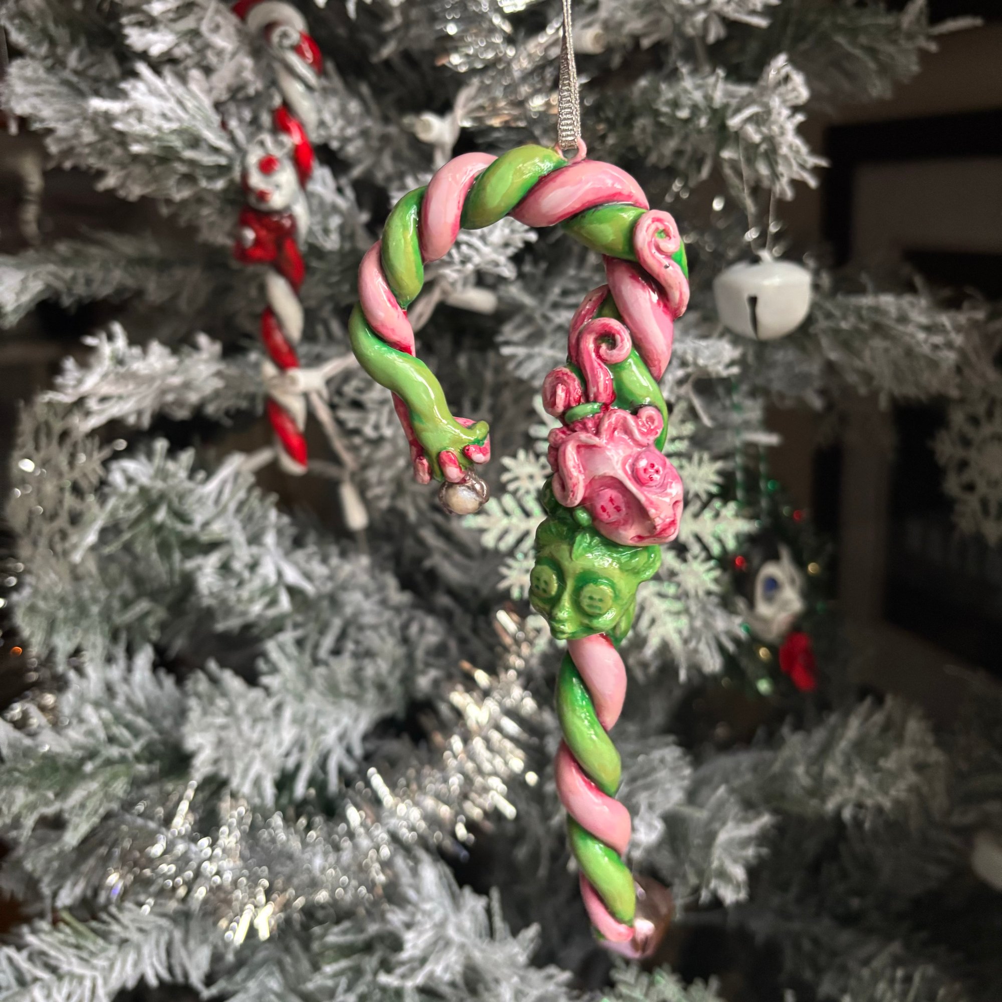This listing is for one taffy candy cane ornament inspired by Coraline.